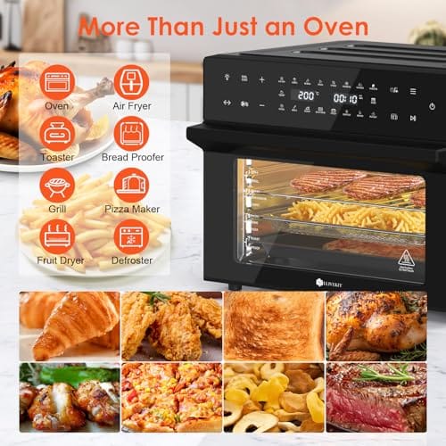 LLIVEKIT 30L Air Fryer Oven XXL with Rotisserie, Mini Oven with 20 Programs, 9 Accessories, LED Touchscreen, Stainless Steel Liner, Double-layered Glass Door, Recipe Book