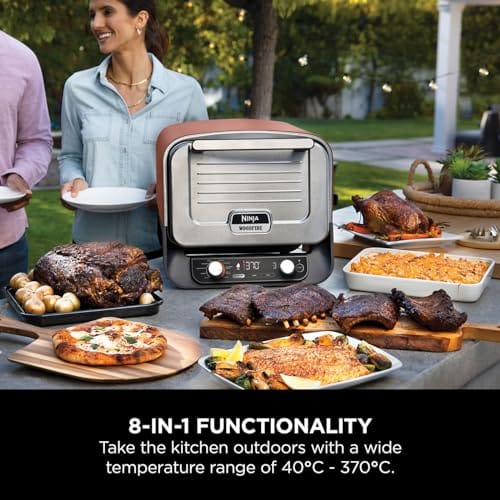- 8-IN-1 OUTDOOR ROASTER OVEN, PIZZA OVEN & BBQ SMOKER: Pizza, Max Roast, Gourmet Roast, Top Heat, Bake, Smoker, Dehydrate & Keep Warm functions. Take the kitchen outdoors & unlock a world of flavours.