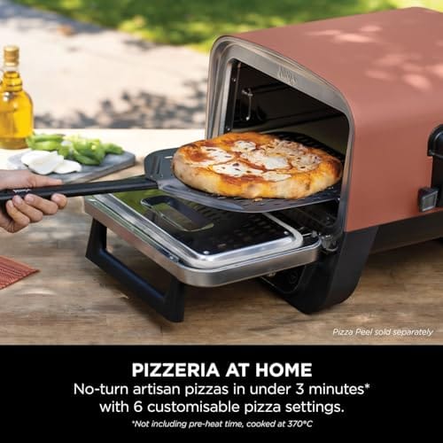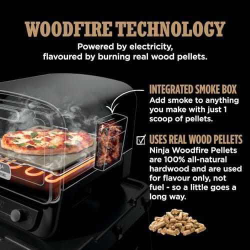Ninja Woodfire Electric Outdoor Oven, 8-in-1 Pizza Oven, High-Heat Roaster & BBQ Smoker with Roast Rack, Pro-Heat Tray, Pizza Stone,Wood Pellets & Scoop, Electric,6 Pizza Settings,Burnt Orange OO101UK