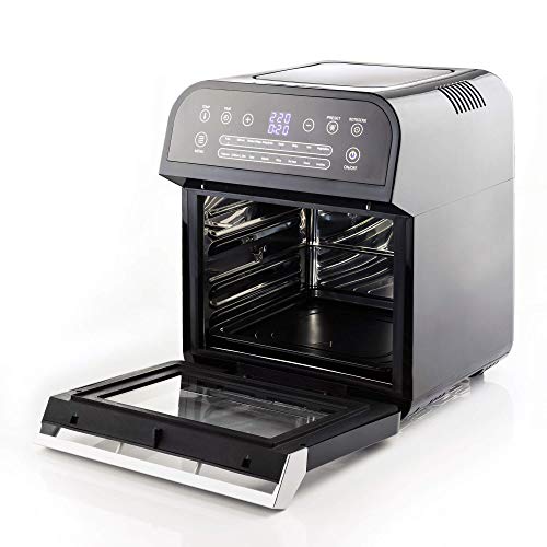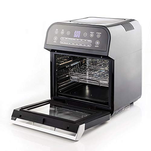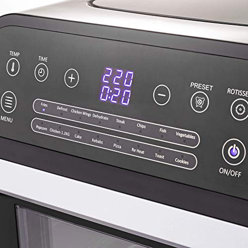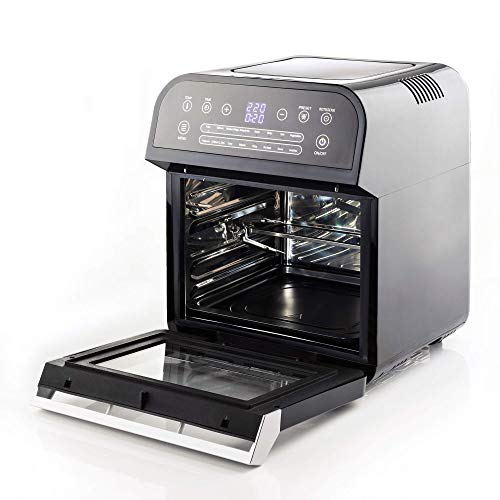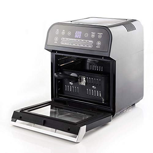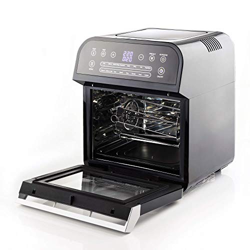 With 1600W of power and an enormous 12 litre capacity, the powerful air fryer has been adapted into this mini oven design to give it more versatility and ease of use. The temperature can be set in 10°C increments from 50°C to 220°C and the cooking time can be set in 1-minute increments up to 60 minutes.